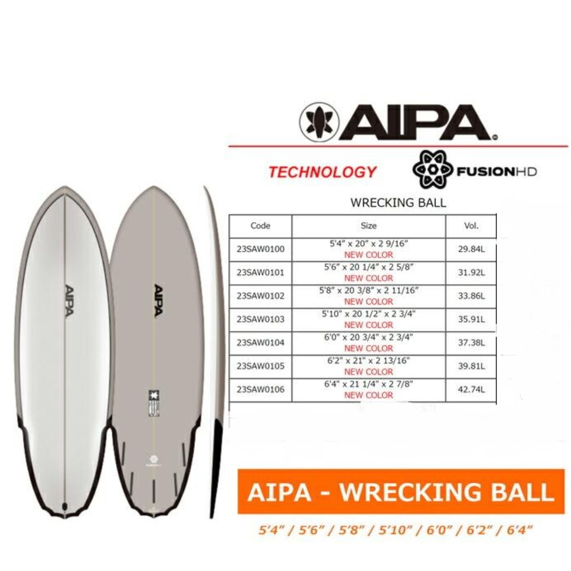 AIPA The Wrecking Ball Fusion HD Surfboard GREY 6-0