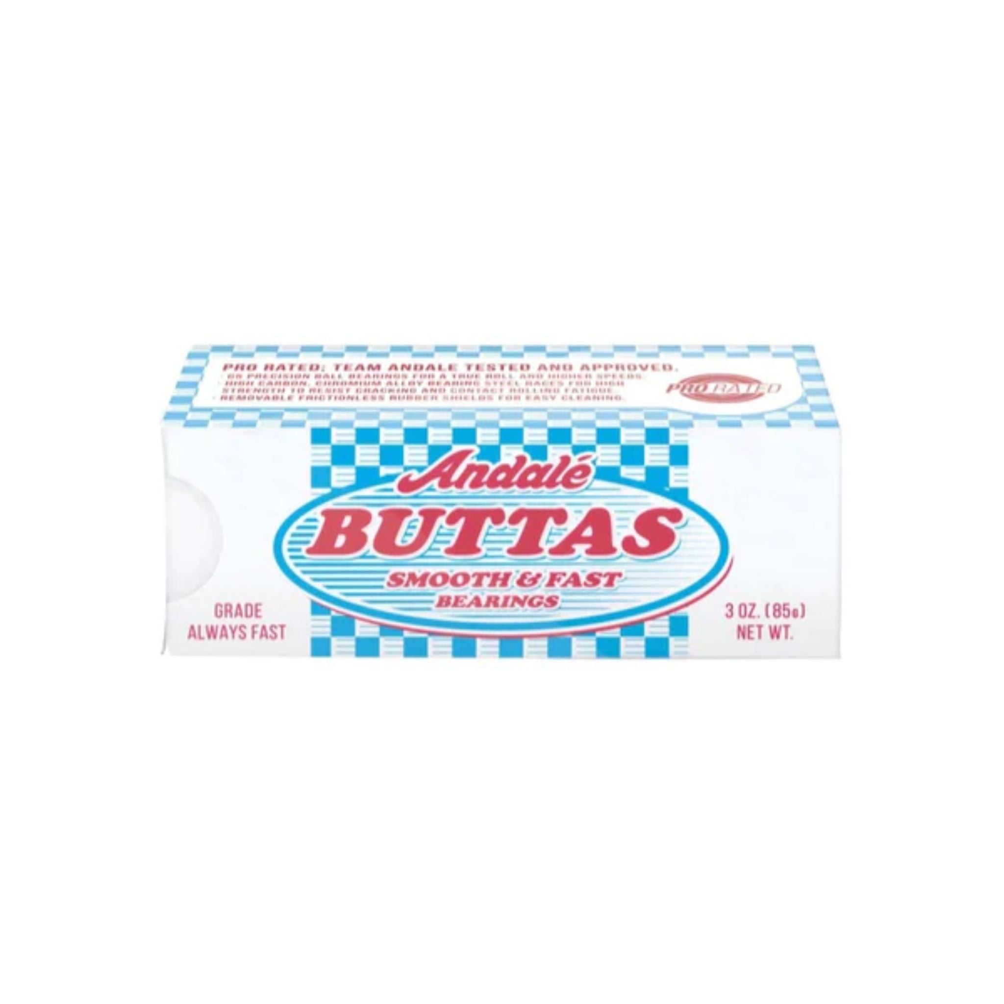 Keep it moving and keep rolling with the Andale ABEC Buttas Bearings. Tested and approved by the Andale team. The ABEC Buttas feature G5 precision ball bearings for a true roll and higher speeds. High carbon, chromium alloy bearing steel races for high strength to resist cracking and contact rolling fatigue. Removable frictionless rubber shields for easy cleaning.