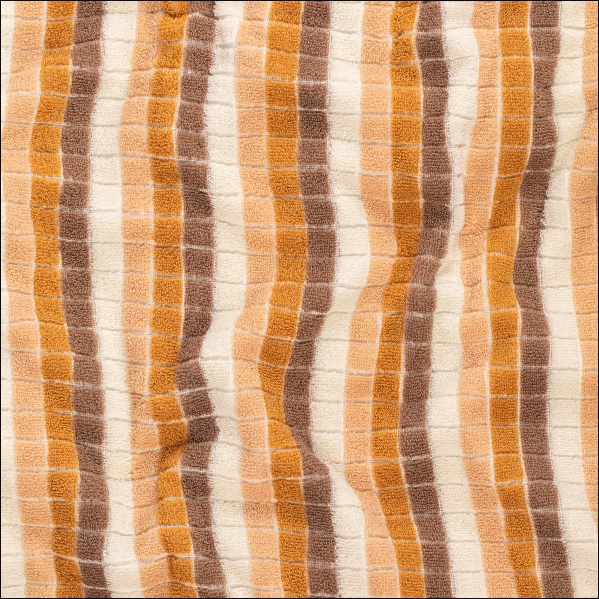 Step back in time with Horizon. This retro-inspired towel combines luxe terry with debossed squares and nostalgic 70s-style stripes. Perfect for those who love a retro vibe with a modern twist.