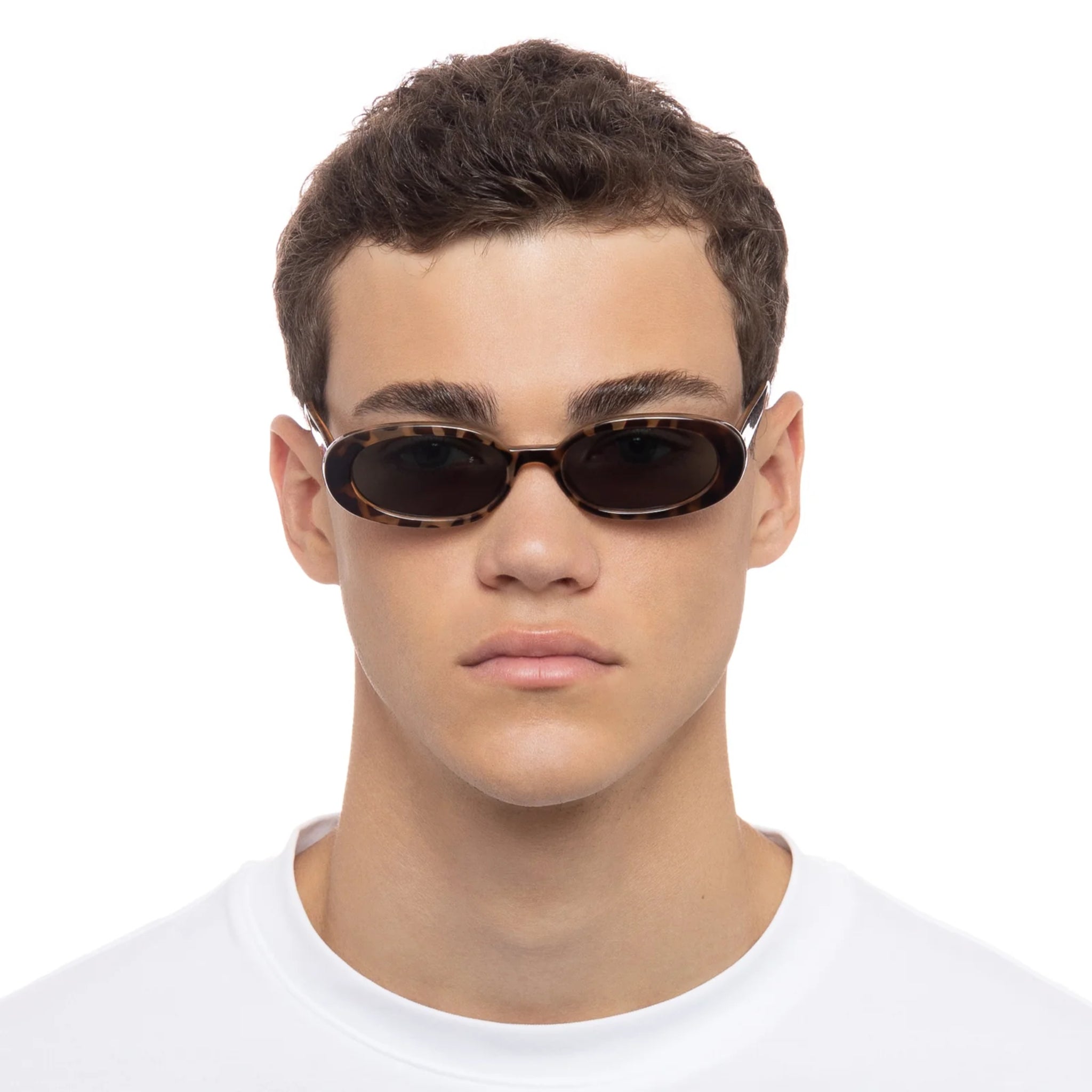 Exuding '90s confidence, our iconic OUTTA LOVE silhouette offers a minimal nineties look. This petite, slimline oval silhouette features a modern flat profile and signature Le Specs gold metal hardware, and is just the right size to complement your face without hiding your best features.