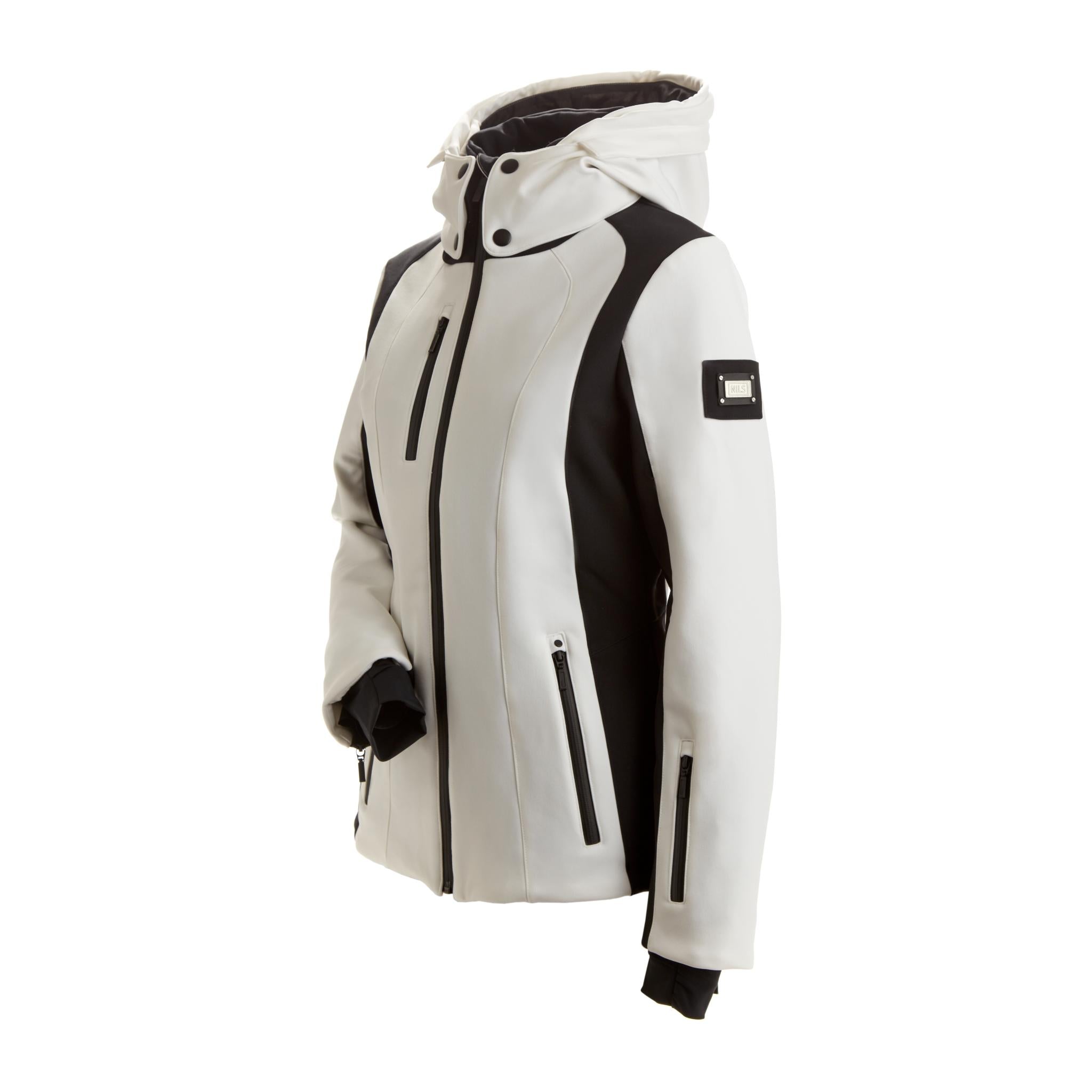 Solid and 2-color hip length ski/snowboard jacket with flattering princess seams. This jacket features 2 handwarming pockets, chest pocket and sleeve pass pocket. This jacket is made of a 3-layer 4-way stretch Dermizax fabric and is designed with custom hardware and YKK waterproof zippers. CBL 26 1/2". Waterproof/ Breathable rating 20/10.
