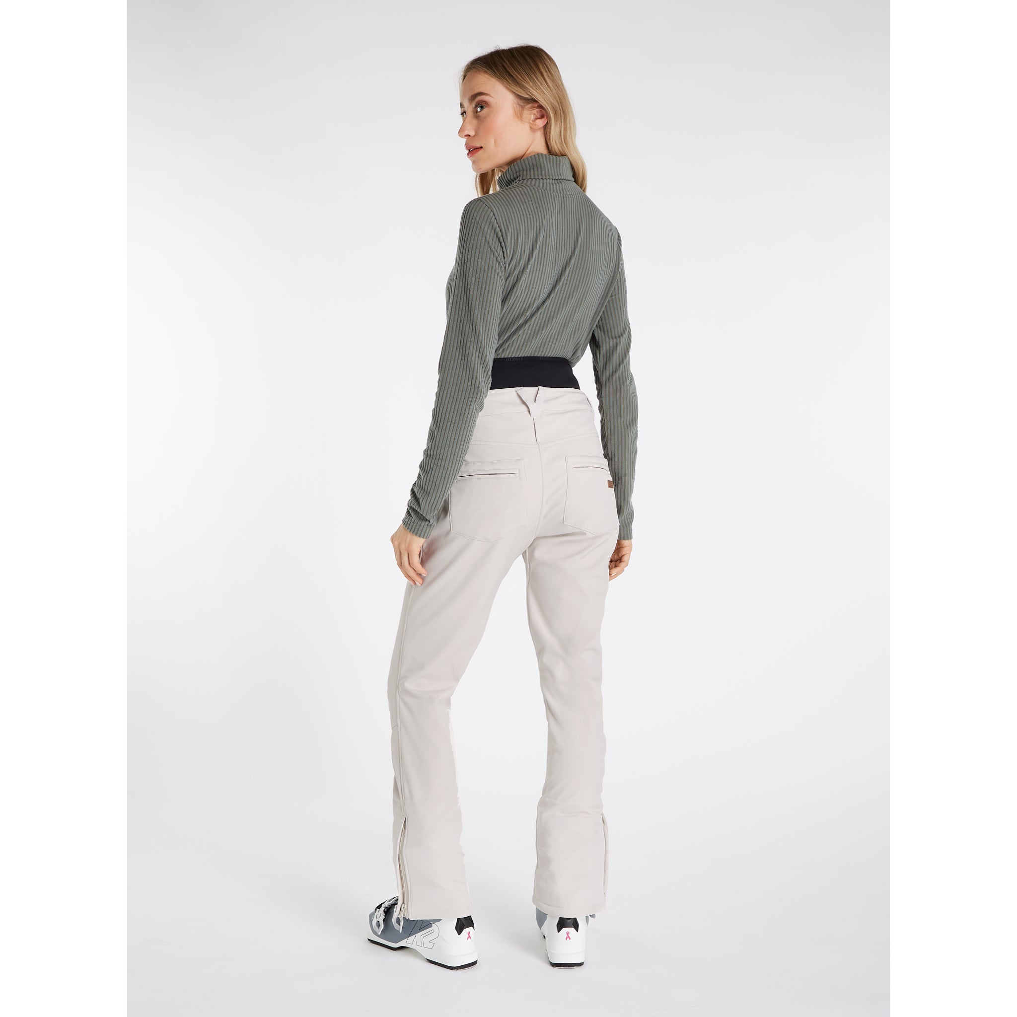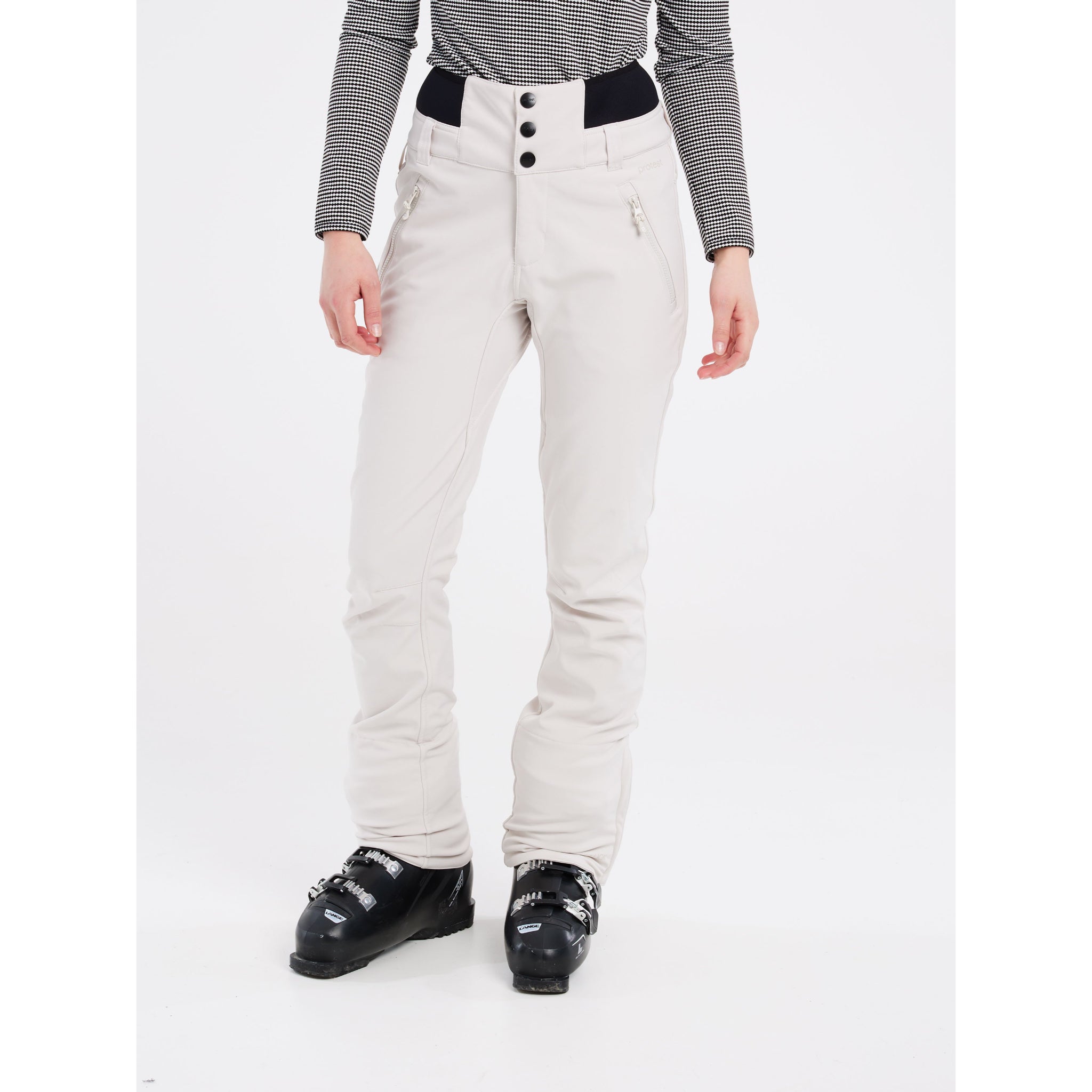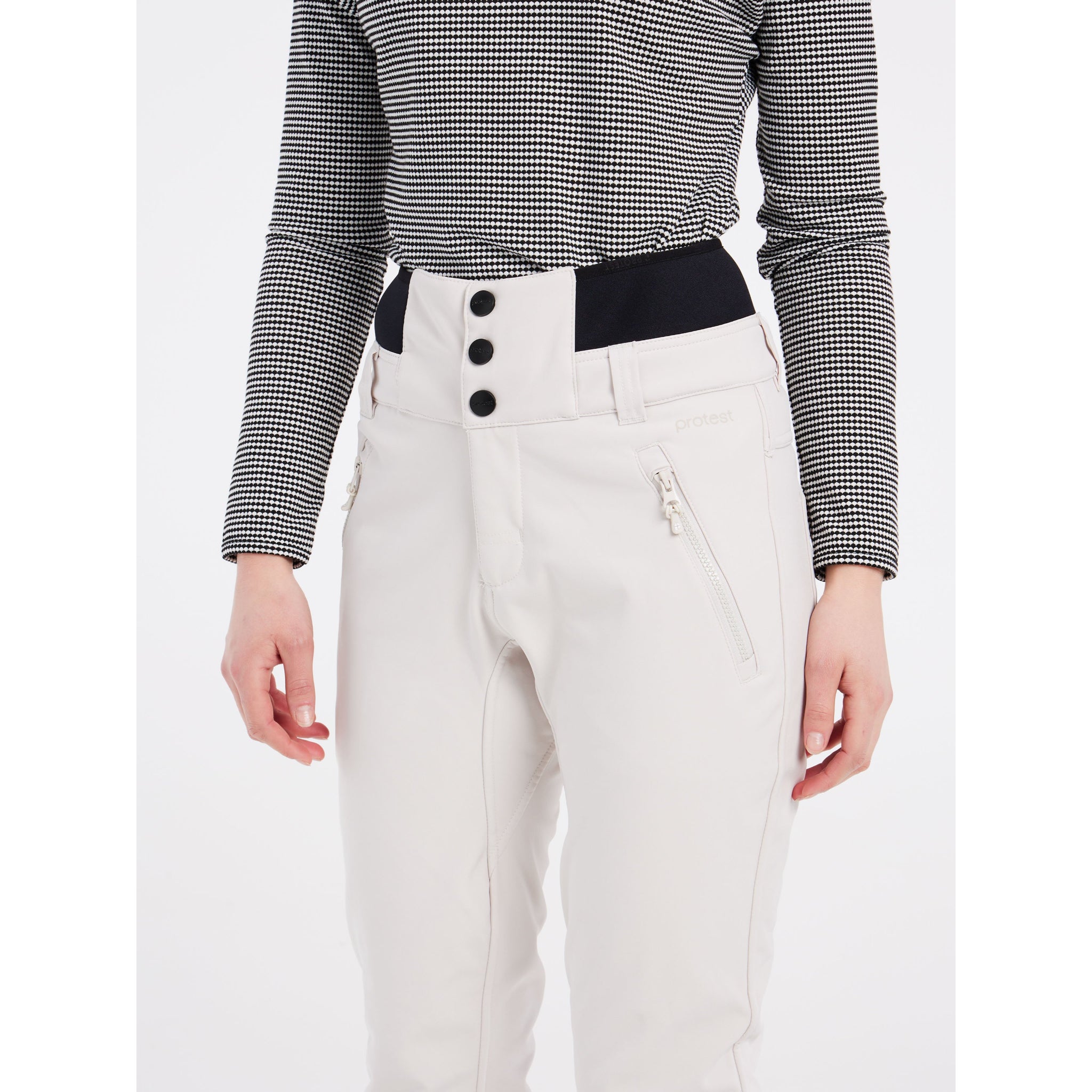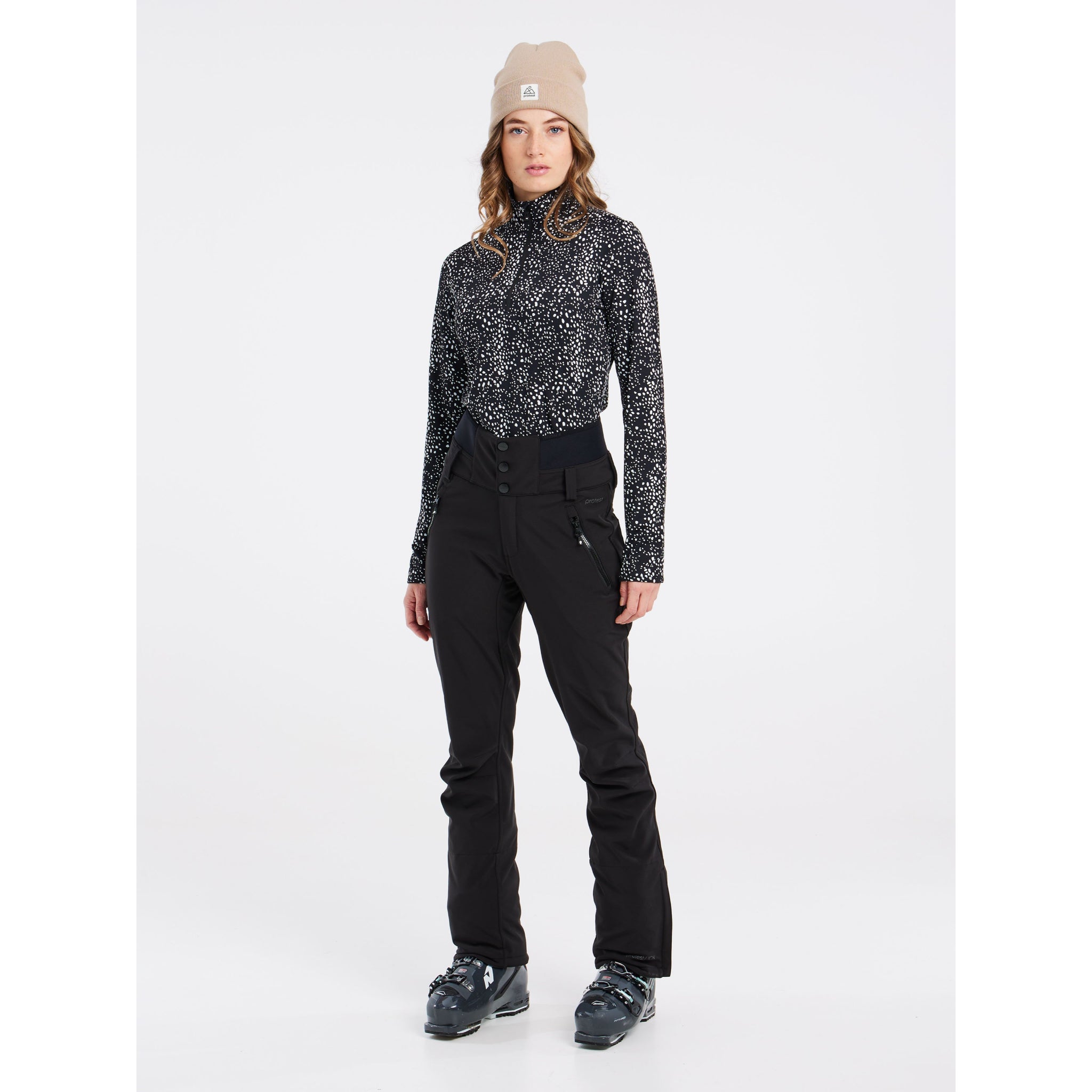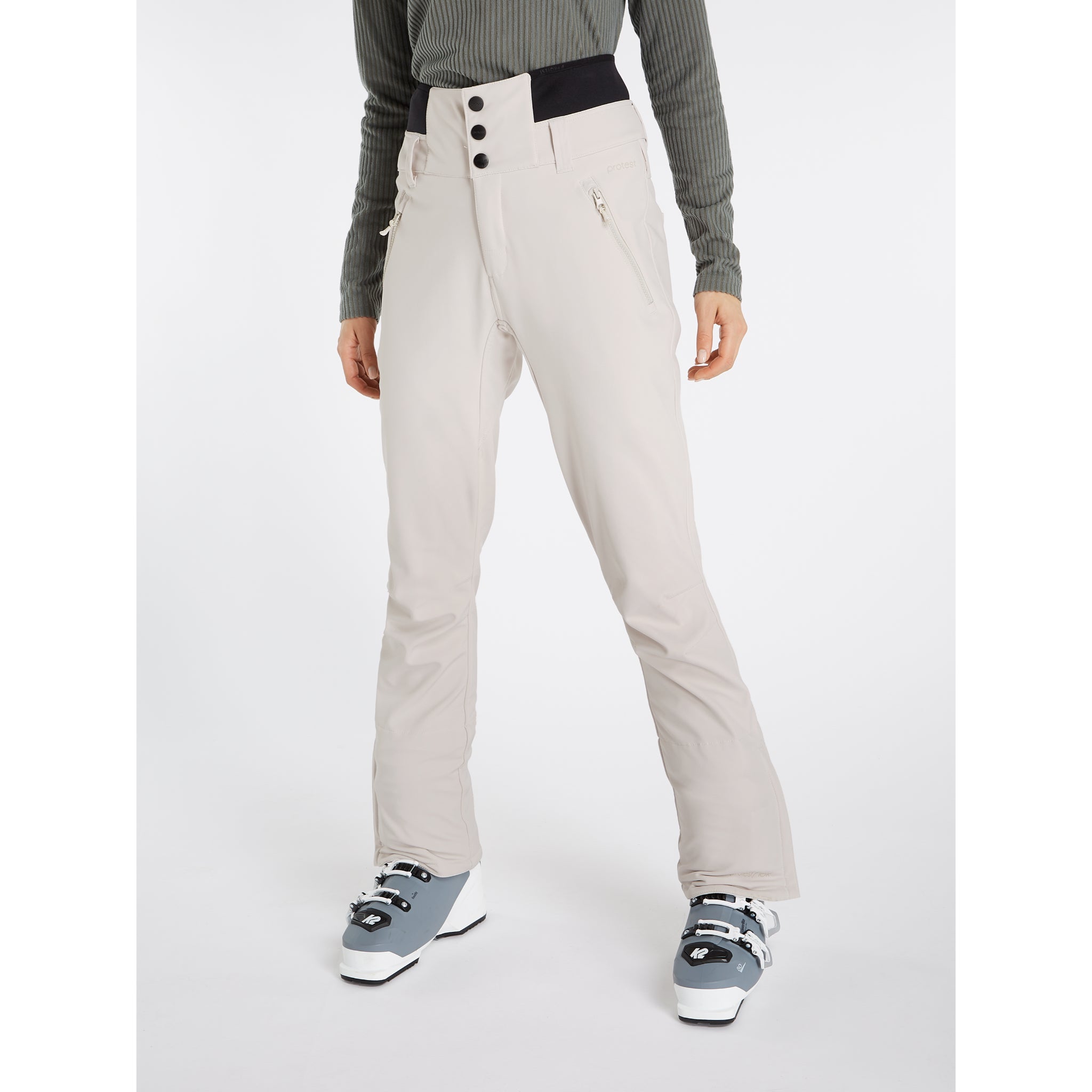 The neoprene waistband is high and is closed using press buttons. There are zippers at the ankle so that you can easily get your boots on and off. Your perfect snow trousers, the Lullaby by Protest.