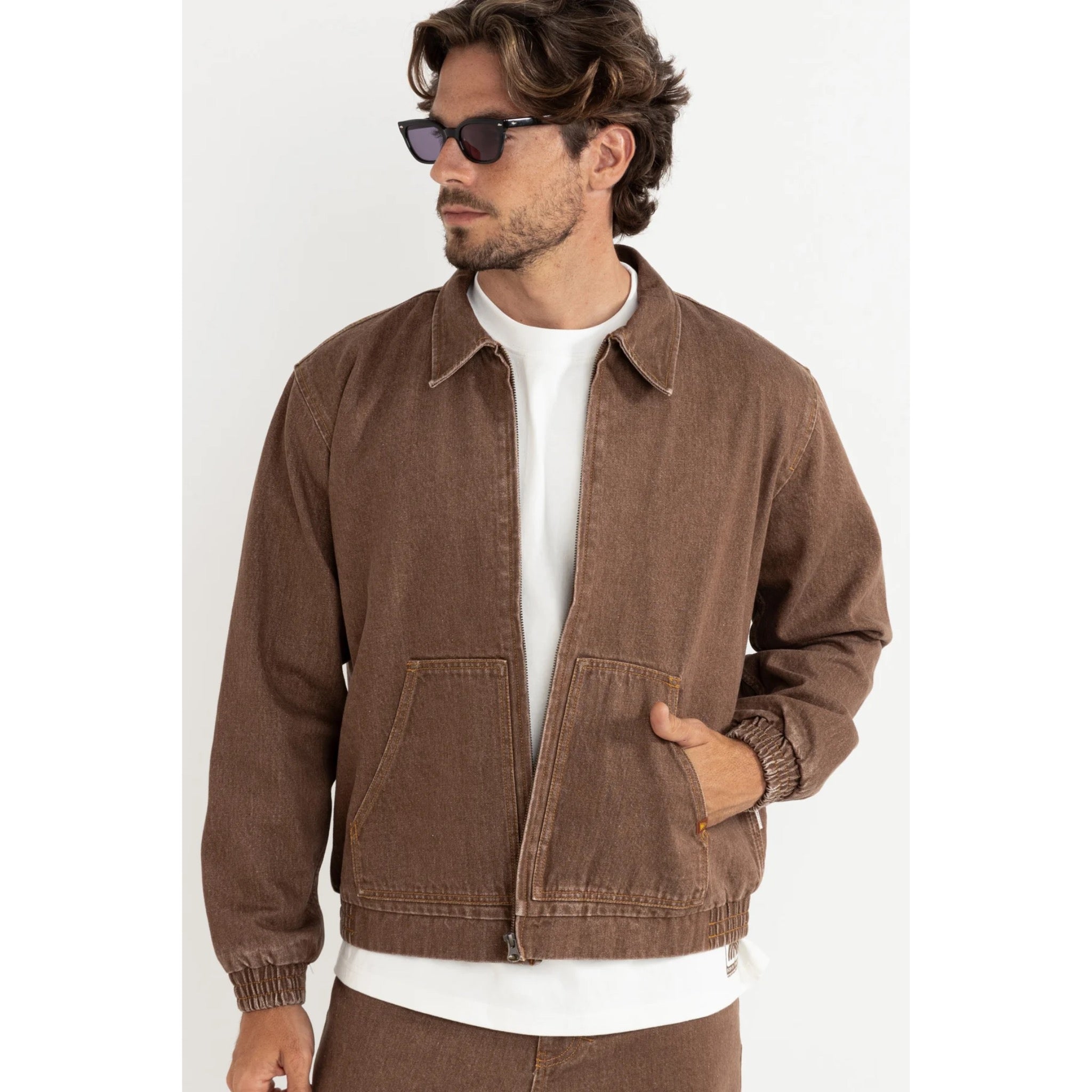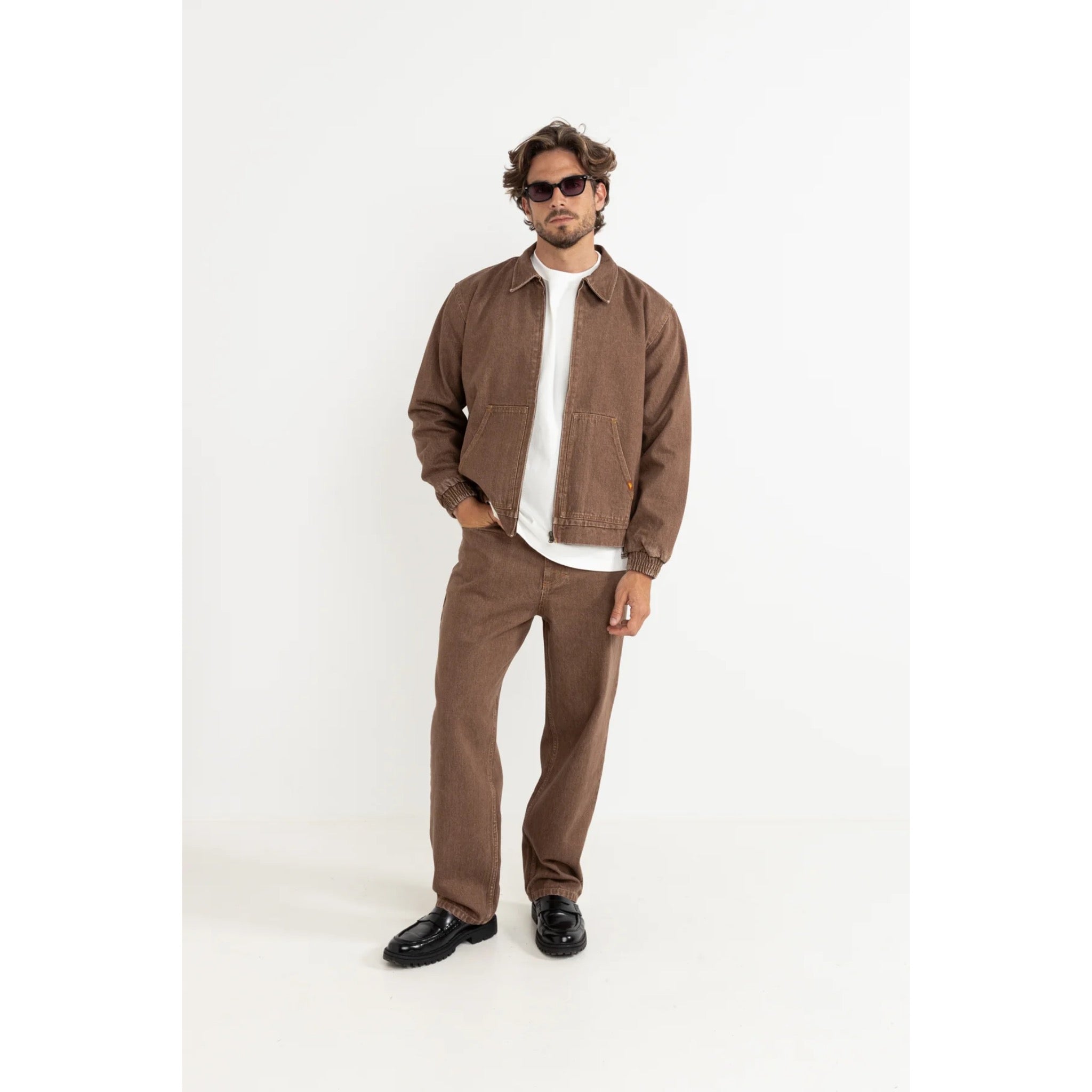 The Sundowner Denim Jacket in Tobacco is a heavyweight layer crafted for effortless versatility. With oversized pockets and a semi-elastic waist for comfort, this jacket delivers a perfect mix of rugged durability and relaxed styling.