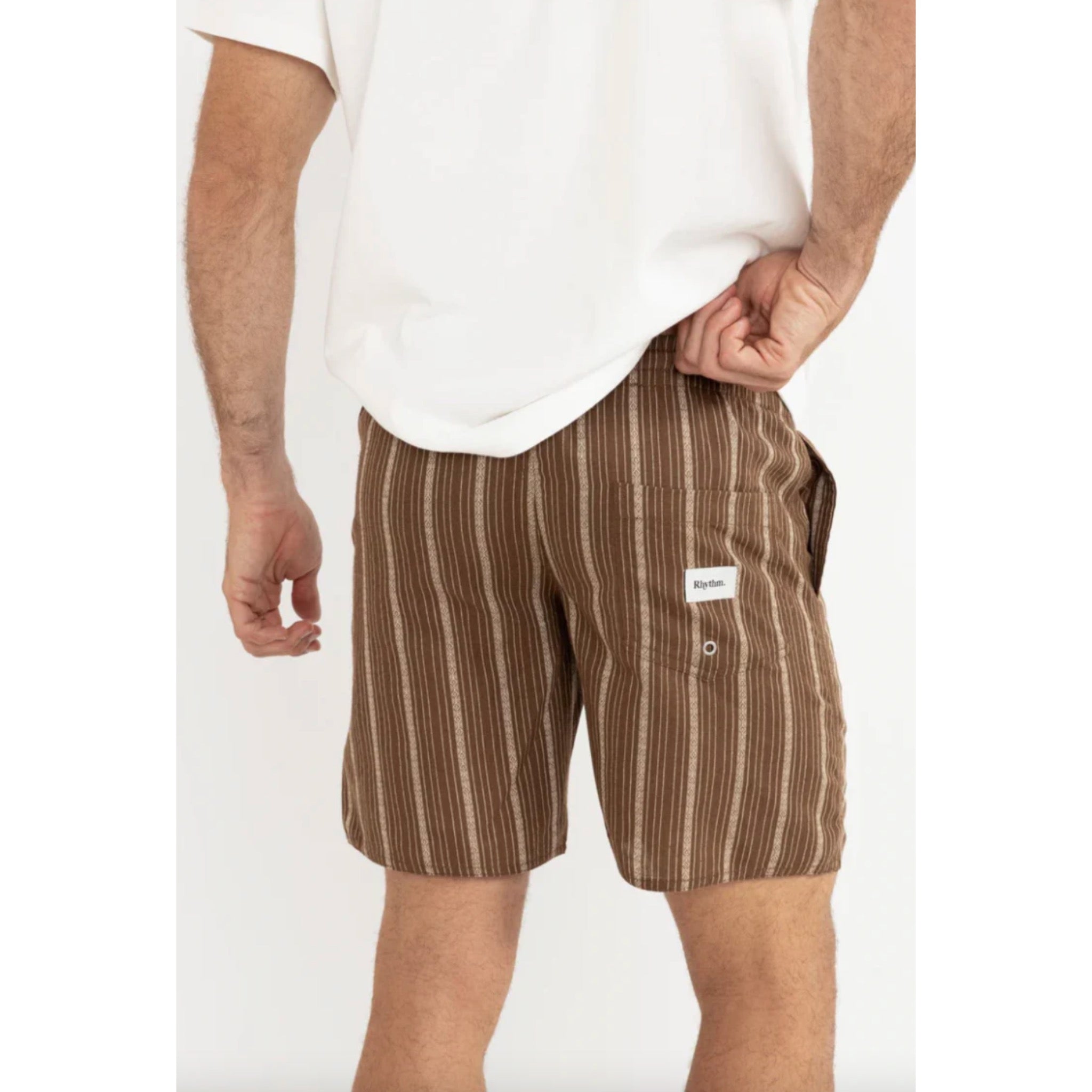 The Rhythm West Wind Stripe Jam Shorts are made from a soft, comfy polyester-cotton blend with a 17-inch outseam and a tailored fit with enough stretch for active days.