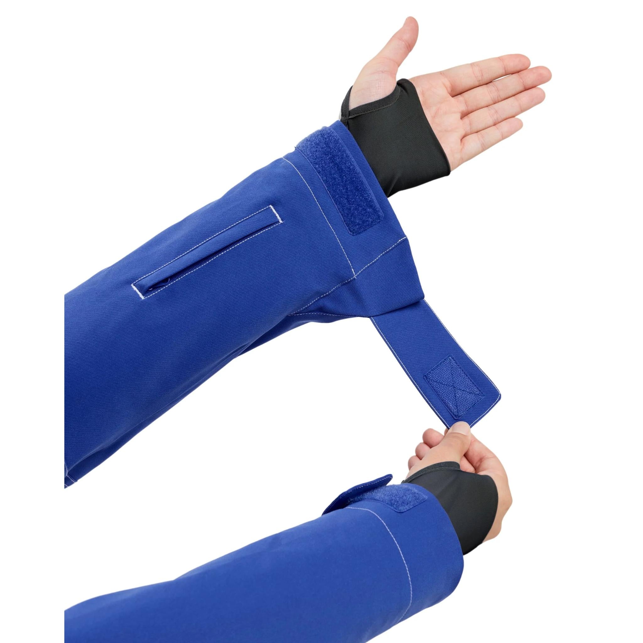 - 2-way adjustable hood, Lycra wrist gaiters, sleeve pass, media and goggle pockets
