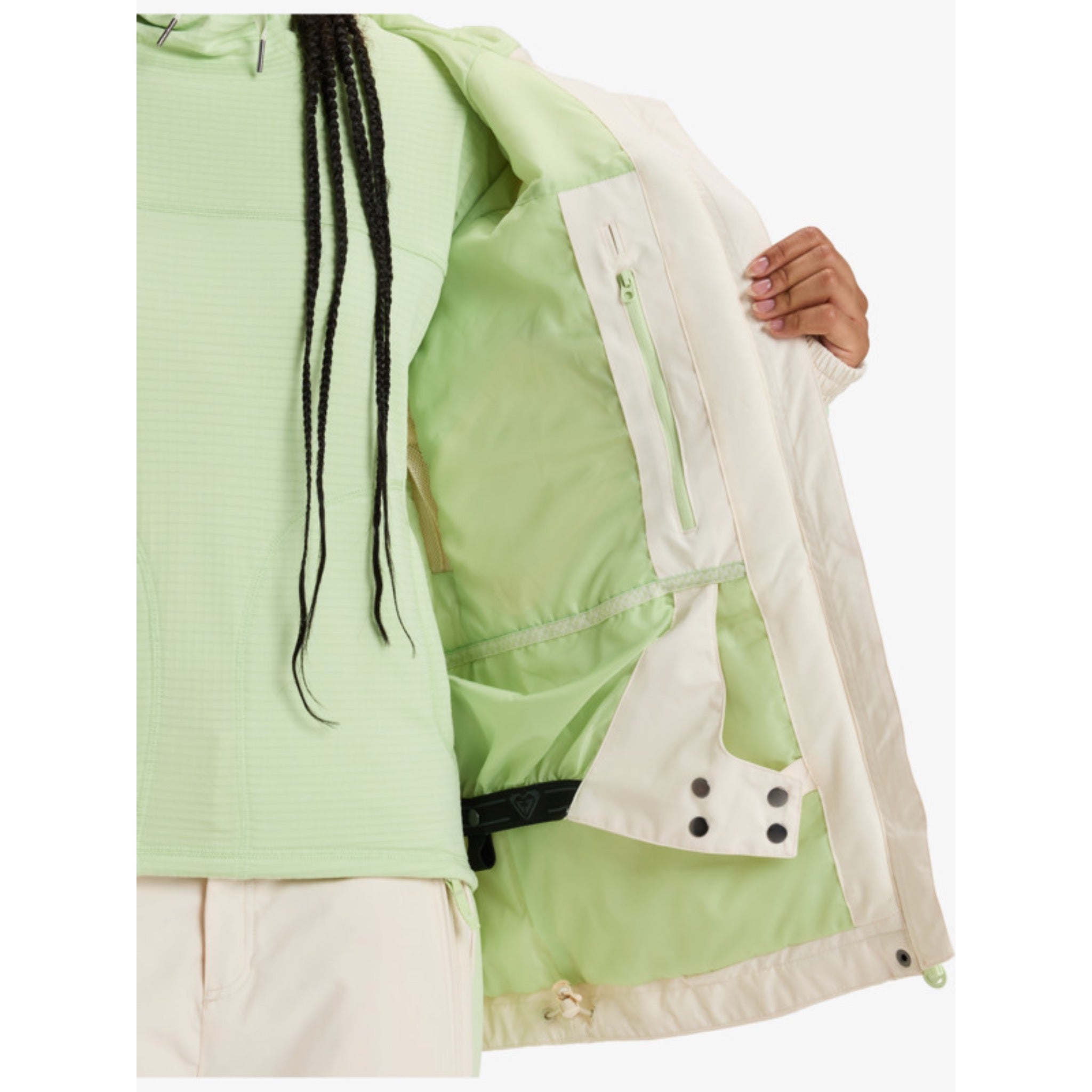- Insulation: ROXY Warmflight[R] 70% Recycled [Fill weight: 100 body, 60g sleeves, 40g hood]