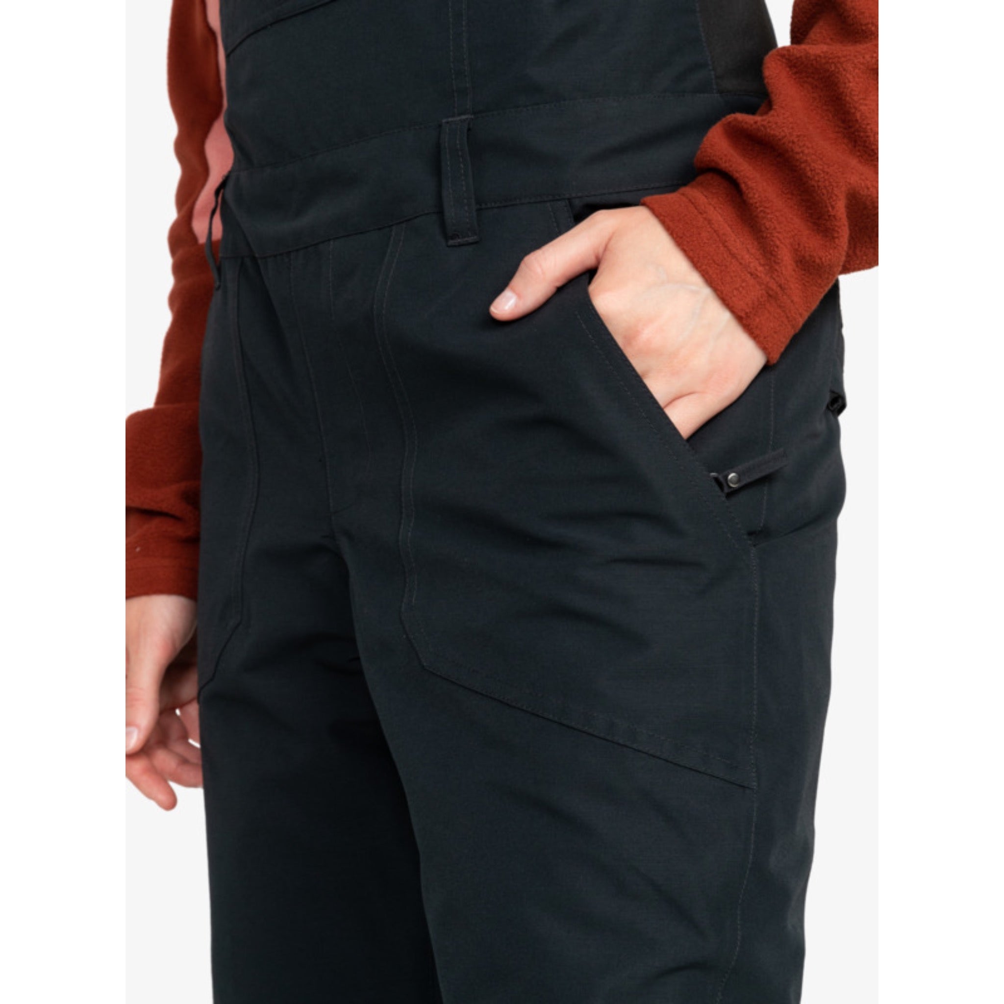 - Pockets: Front hand pockets and bib pocket