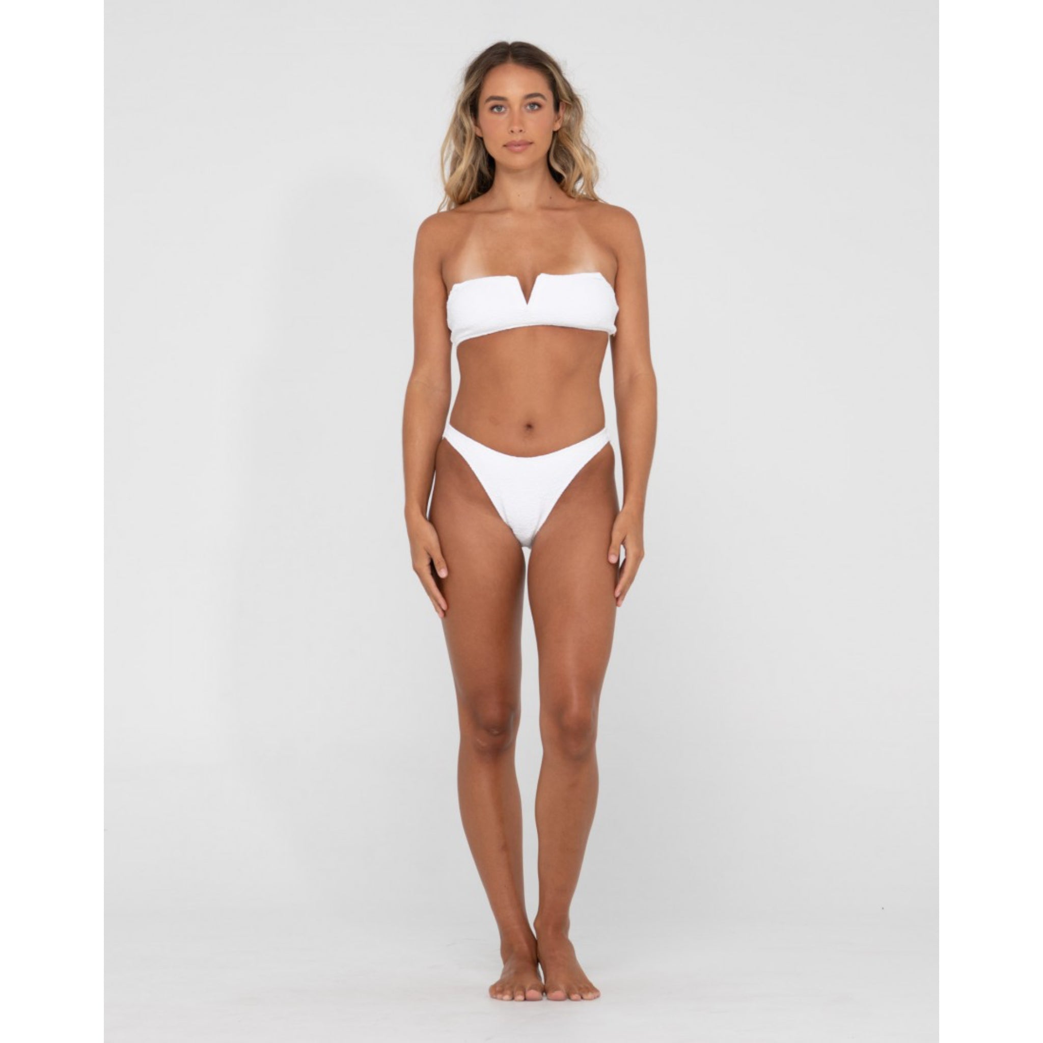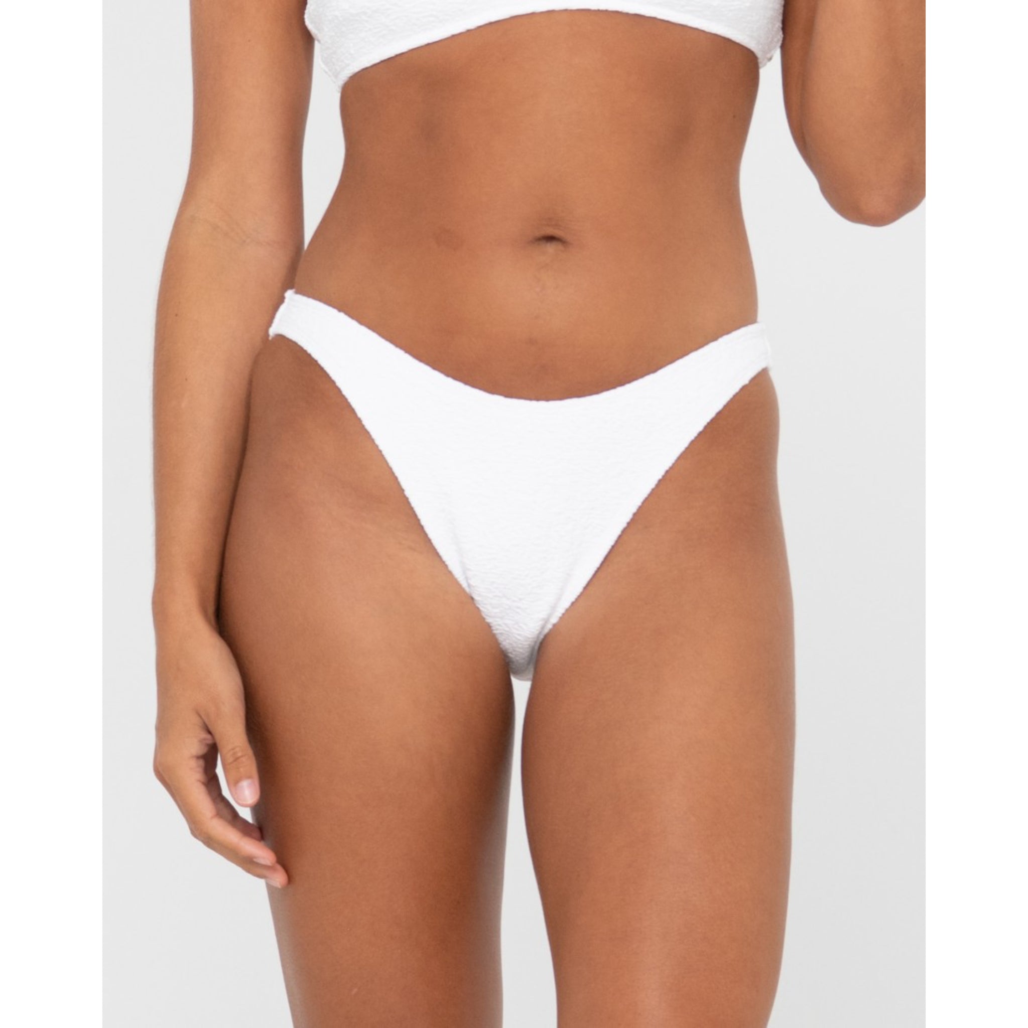 Feel fine this summer in this textured classic cut bikini pant with full bottom coverage. Bright white to keep you glowing on the beach.