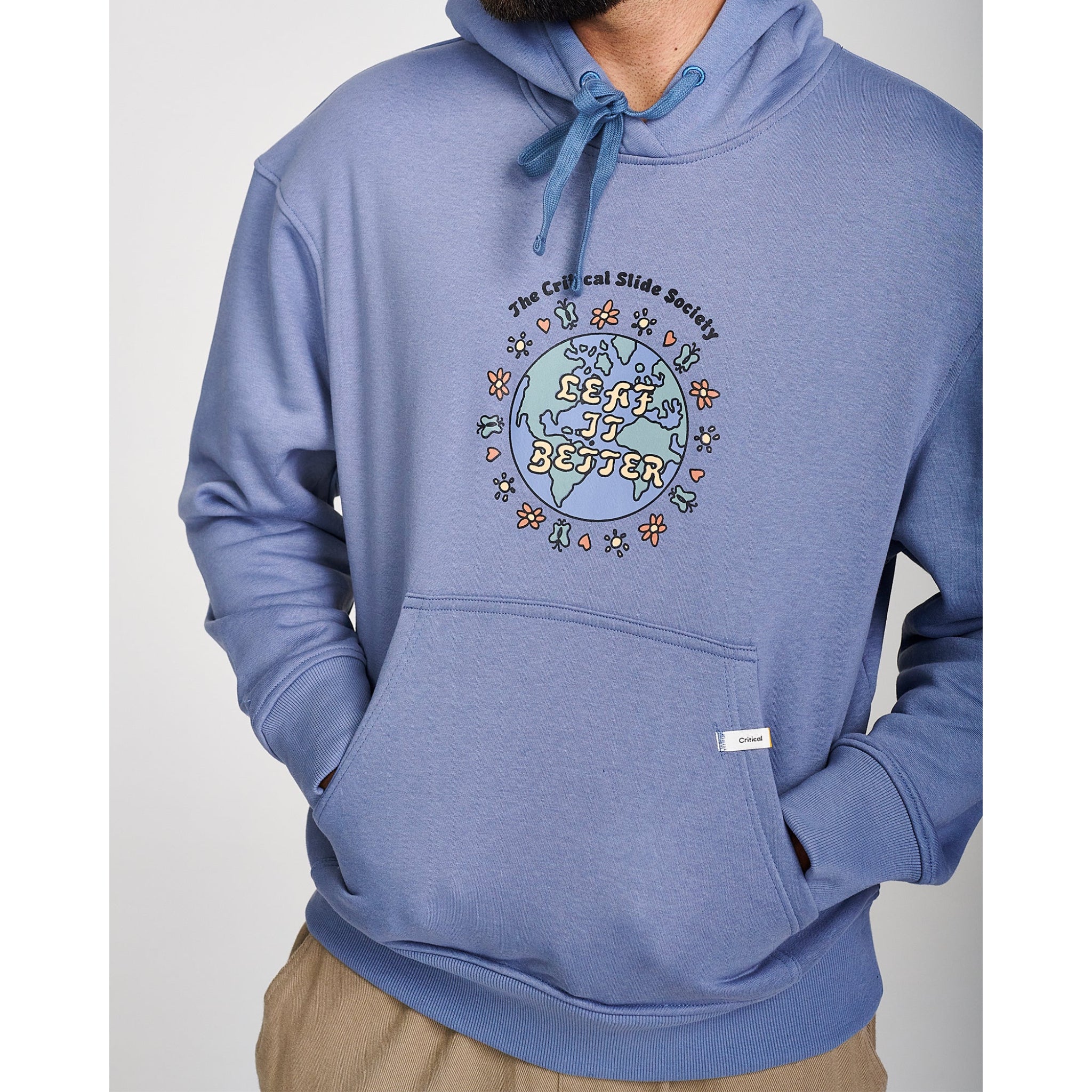 Critical Slide Regular Hoody Fleece Fit. Slightly Oversize and off the Shoulder. Our Model is 6'1" and is wearing a Large.