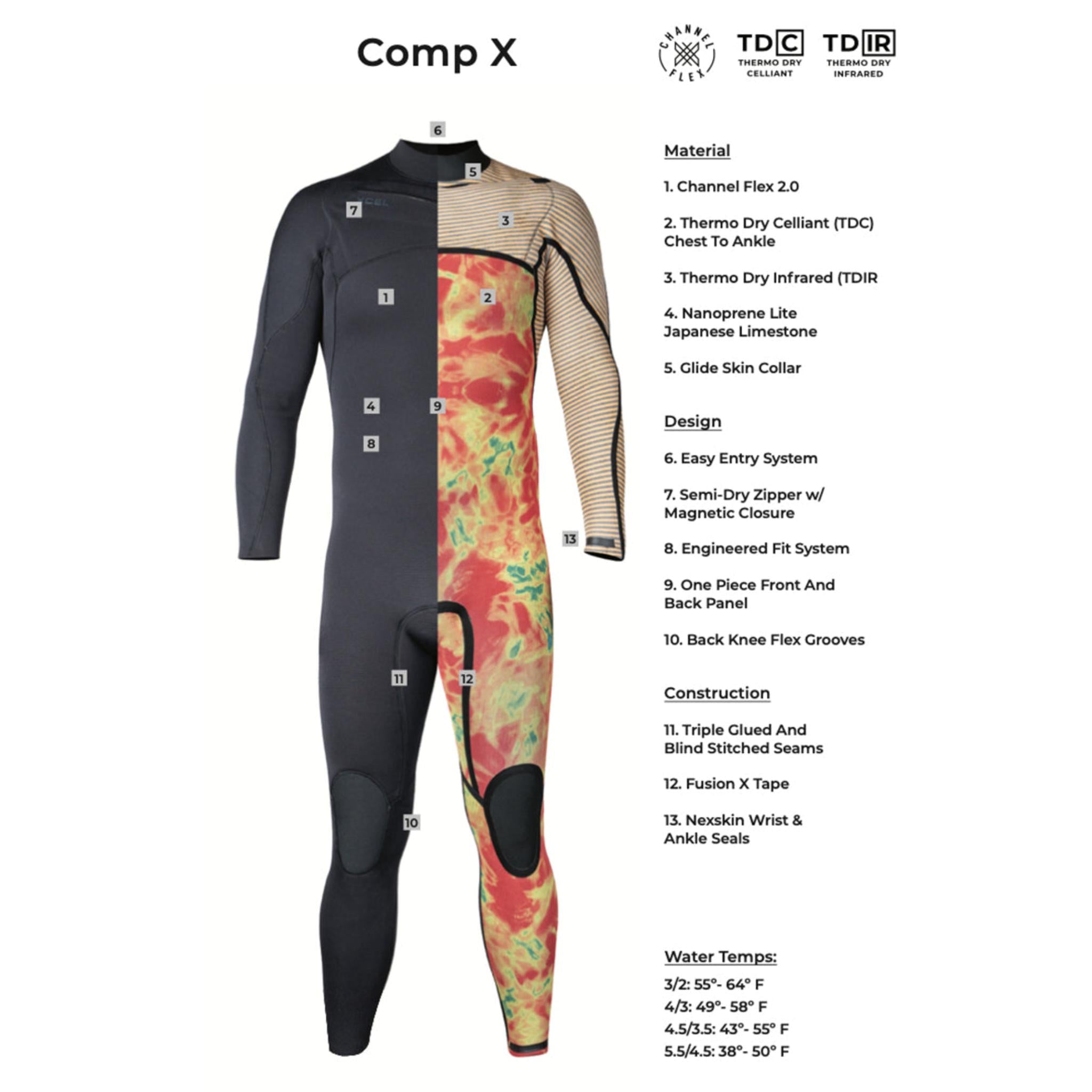 Light Weight Flexibility. The Comp is the lightest, most stretchy wetsuit we offer. The 100% ultra-stretch exterior combined with our Thermolite IR core, and critically taped seams, make this wetsuit insanely comfortable.